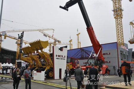 作为我国规模最大、产业链条最完整、综合实力和经济效益最好的工业车辆研发、制造与出口基地——安徽叉车集团有限责任公司隆重出席了本次展会。从2008年首次亮相便大获成功后,这已是连续第四次参加,再次向外界证明了中国工业车辆行业的龙头企业的综合实力。位于室外展区C.09,面积达862㎡,展台经过了精心设计,“合力红”在众多的展位中尤为显眼,展台入口处的大屏幕循环播放着最新的安徽叉车集团宣传片,吸引了大批观众驻足观看。提升合力品牌在国际市场上的知名度与美誉度,突显“品牌、实力、创新、新能源”的主题。