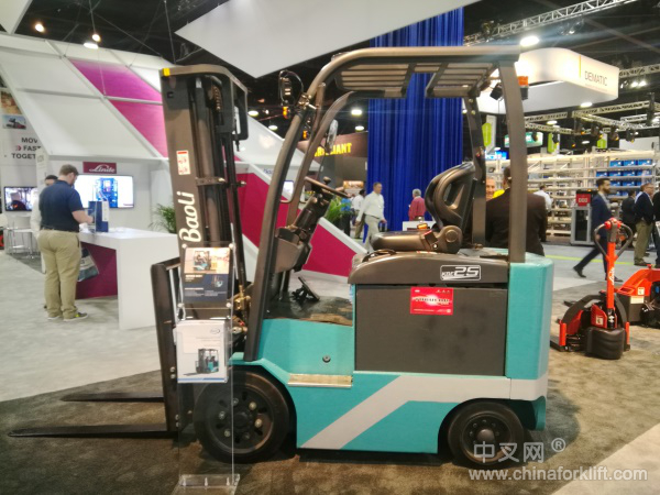 为期四天的Modex Show 2018,是由美国物料搬运协会(MHI)主办的物流展,隔年分别在芝加哥和亚特兰大举办。凯傲宝骊作为德国凯傲集团旗下叉车品牌,始终秉承着“质量优先,服务客户的理念,不断发掘客户对于产品的需求,持续创新”的理念,研发了众多适销对路,实用可靠的产品。此次推出的KBE25C电动平衡重叉车,匹配意大利进口ZAPI控制器,KDS电控,减震实心胎,标配3节4.7米门架,博索尼侧移,符合北美UL标准,是中国制造为数不多能符合美国安全标准UL的产品。属于室内用车,车身紧凑窄小(107.5cm宽,普通2.5吨电车126.5cm 宽),广泛应用于集卡车厢内搬运,适用于租赁市场。