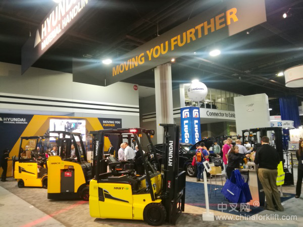 现代始终遵循“技术现代,世界现代”的一贯理念,以满足顾客的要求为宗旨,以服务社会为己任。坚持质量第一、恪守信誉为本、强调技术领先、突出持续改进、竭诚服务顾客。在此次展会上,现代展出了电动叉车、液化石油气叉车、前移式叉车及新能源等针对北美市场的高端产品系列。现代叉车的精工品质,在展会上吸引了众多客户纷纷驻足洽谈询问。【专题】