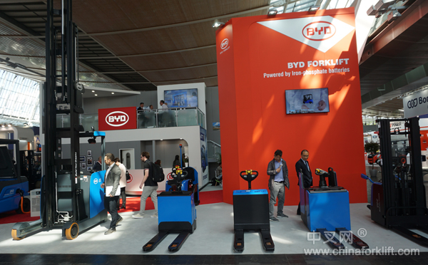 除此之外,比亚迪还携带了其他六款欧洲首发车型齐齐亮相。前移式电动叉车RTR16、电动牵引车T30、堆垛车EPS14P和ESP15I及两款电动托盘车PTP20P和PTW20S也在本次展会中展出。