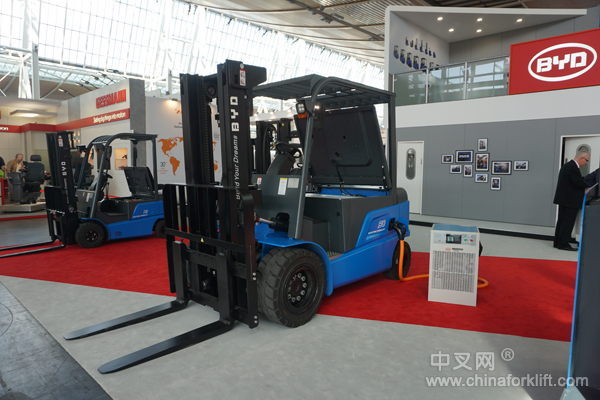 此次亮相的12款叉车产品,全都搭载比亚迪自主研发的磷酸铁锂电池。