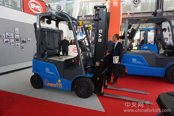 比亚迪展台上的ECB20C纯电动叉车也当之无愧的成为本次展会的焦点之一,为全球首款搭载防爆技术的纯电动叉车。这款车型可在极端严苛的环境中作业,具有节能、易操作、性能良好等优势。比亚迪叉车与防爆改装专家美瑞帝(MIRETTI)合作,在前者的纯电动叉车上搭载满足欧盟防爆新指令和欧盟安全标准的防爆装置,共同为其客户带来经济、高效的防爆电动叉车。未来, 比亚迪将和美瑞帝一起为北美、中国等更多市场提供符合相关国家法规及标准的防爆叉车产品。
