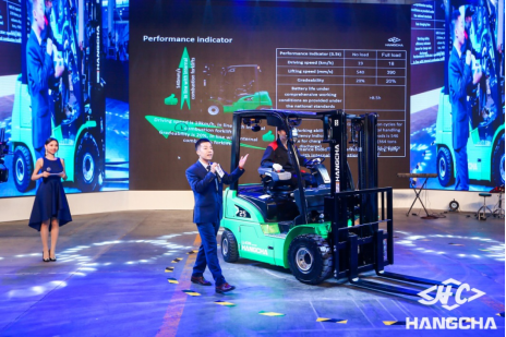 新产品展示现场分为新产品发布区、锂电产品展示区、北美产品展示区、概念车展示区、仓储车展示区、细分市场展示区、大吨位车展示区、X系列电动叉车展示区、AGV演示区、新能源产品展示区、高空作业设备展示区及属具展示区等,参展产品和零部件共计200余台套,向全球代理商和客户集中展示了杭叉新开发的工业车辆和核心部件。