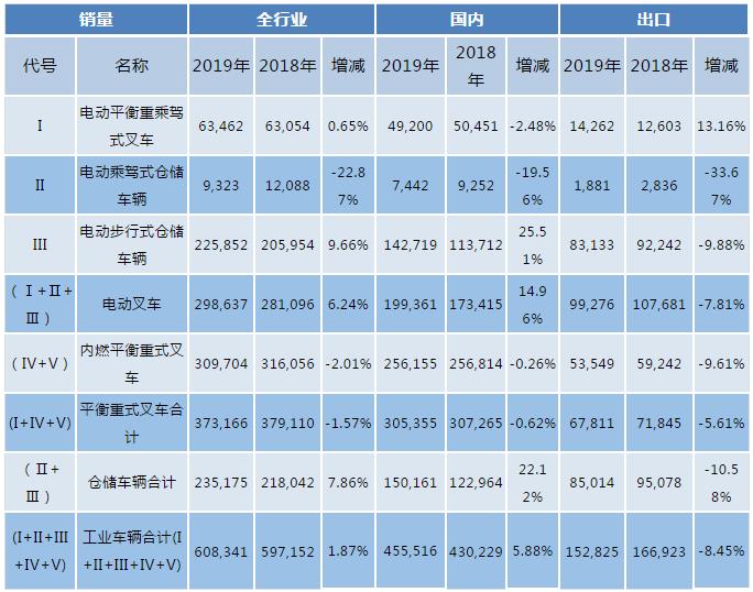 2020年的开年伊始,一只巨大的黑天鹅从天而降,一种闻所未闻的新型冠状病毒感染性肺炎疫情以不可阻挡之势席卷神州大地,严重地影响着中国乃至全球的经济发展趋势,前景不容乐观。回顾刚刚过去的2019年,对于中国的叉车行业来说,从年初的涛声依旧,延续上一年度的市场惯性,到年中的断崖式下滑,再到年底的趋于平稳,一波三折,考验着中国叉车人的智慧,一开始感觉有些意料之外,细细想想其实也还是在情理之中。从中国工程机械工业协会工业车辆分会刚刚公布的2019年的全年销售数据来看,在2019年度,中国叉车的全年总销售量居然高达608,341台,再一次刷新了中国叉车行业的历史纪录,继续成为全球排名第一的叉车超级生产大国和销售大国,国内销售量正增长,出口负增长,相信这个结果超出了大部分人的预料。总的来看,2019年,中国叉车的整体产量在增加,国内销售在增加,电动叉车的比重在增加,锂电池叉车销售量在增加,叉车租赁数量在增加,然而,盛夏过后必然是严冬,2019年的总体销售量很有可能是中国叉车行业阶段性的一个小高峰,产量虽然再创新高,但是企业的利润率却都是在大幅度下滑。未来几年的形势必然严峻,特别是眼前的2020年,中国叉车行业的竞争态势必将更加激烈和严峻,对于所有的参与者来说,风险与机会并存。苦练内功,敦实基础,厚积薄发,希望能成为中国叉车企业在2020年的主题曲。