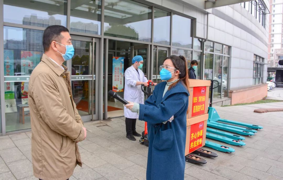 凯傲宝骊财务总监于冠洋先生接受靖江电视台采访时说道:“凯傲宝骊作为根植于靖江的一家外资企业,本次为人民医院捐赠了6台仓储搬运设备以及800个3M品牌N95医用专业防护口罩,希望为坚守在防疫一线的医护人员提供一份安全和保护的同时,还能帮助医院的物资搬运。让社区感受到凯傲宝骊在快速发展的同时,不忘回馈社会,用行动践行社会责任。最后我坚信我们一定能够打赢这场疫情攻坚战。”