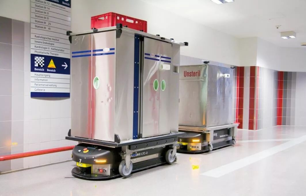 广东省人民医院引进无人驾驶的机器人,可自主开关门、搭乘电梯、避开障碍物、充电等,在医院中承担送药、送餐、回收被服和医疗垃圾等工作;在杭州市第一人民医院,机器人从病毒洁净区承载餐食或物资出发,自动前往各个隔离区房间进行配送,阻断“人传人”的新型冠状病毒传染链条……