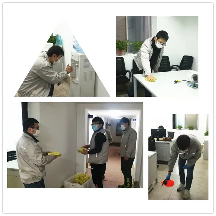 △△苏嘉达、祁奇、孙双飞、刘亲祥、王健等,在开展各自项目的同时,承担起室内日常防疫点检、订餐配送、办公区域消毒杀菌等服务工作