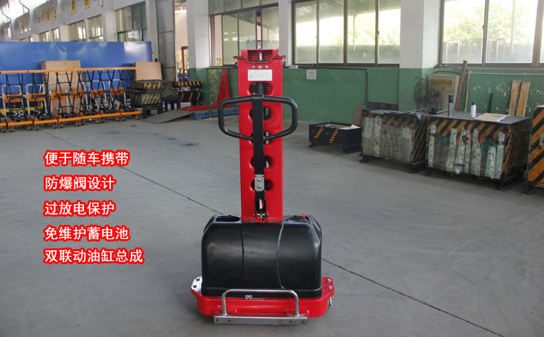 1.便携式半电动堆高叉车可以“随车携带”,设计小巧。一名工人即可操作,将设备自行从货车上卸下来,也可以自行将车辆抬上货车,而无需人力搬运操作。