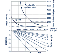 The permissible haul per hour is the total distance travelled, including the return journey and any downhill gradients.