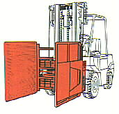 This clamp is also a hydraulic attachment for forklift trucks. The large surface of the clamp arms are especially suited for the transport of pressure sensitive goods such as Cartons, Boxes or Containers.
