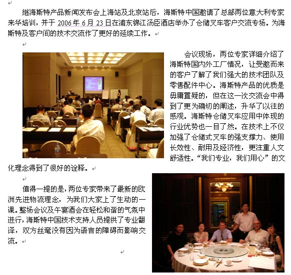 特评:意大利专家在上海-----记海斯特仓储叉车客户交流会
