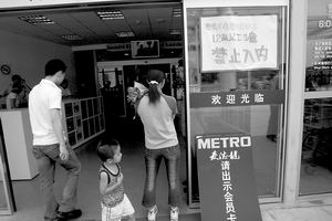 7月30日星期天,周先生抱着一岁多的女儿来到麦德龙。在门口时,周先生被工作人员拦住,“超市规定1.2米以下的孩子不能进入,以防运货叉车伤到来回跑动的孩子。”周先生还是头一次遇到这样的规定,“孩子不会走,我抱着她没事的。