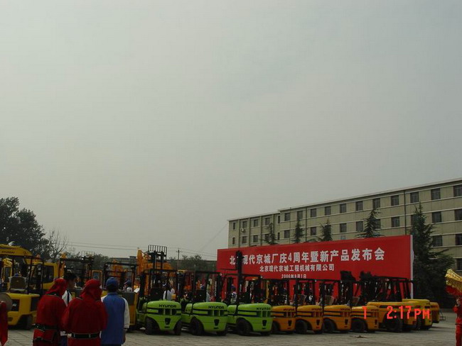 2006年9月1日,风和日丽的北京,北京现代京城工程机械有限公司隆重举行“北京现代厂庆四周年暨新产品发布会”。现代公司全国代理商、外协配套厂、现代嘉宾及新闻媒体约300余人与会。与会嘉宾共同见证了其富有创新意义的新厂门剪彩仪式及现代新产品展示会。