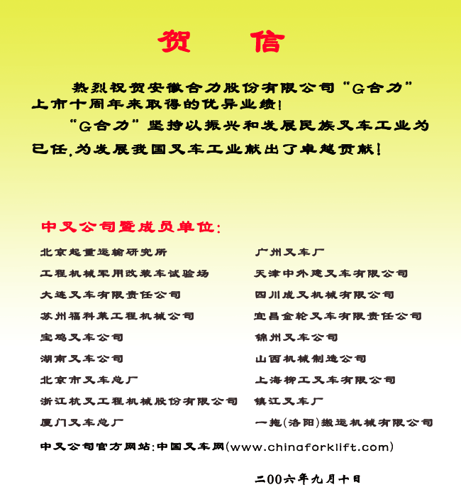 中叉公司暨成员单位热烈祝贺"G合力"上市十周年