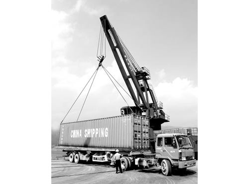 结束了国庆节黄金周长假,肇庆市的各个进出口企业和港口码头进入了年底前的紧张“冲刺”阶段,西江沿岸各港口码头的装卸作业进行得热火朝天。昨日在肇庆市最大的港口三榕港码头,工人们正在吊装集装箱。记者彭建基摄