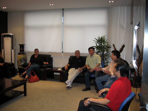 随后在安徽合力股份有限公司市场总监邓总以及上海合力总经理辛总的陪同下,美国同仁参观了展示厅、办公室、财务室、配件部、仓库及员工生活区。参观完后在贵宾室两国同仁进行了亲切的交谈,并对合力的发展进行了深入的探讨并且给予很高的评价,外国友人对合力在美国的发展充满自信,也深信合力在国外的发展会日渐壮大。