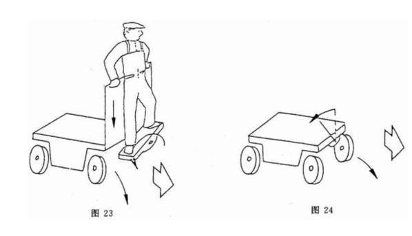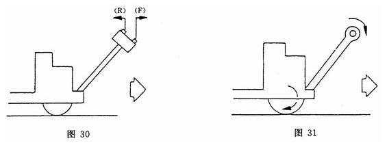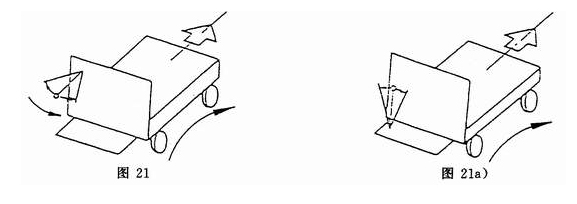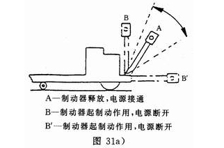 b)除侧面装载和无起升车辆外,无载车辆运行时,最好将其承载装置面向下坡方向。
