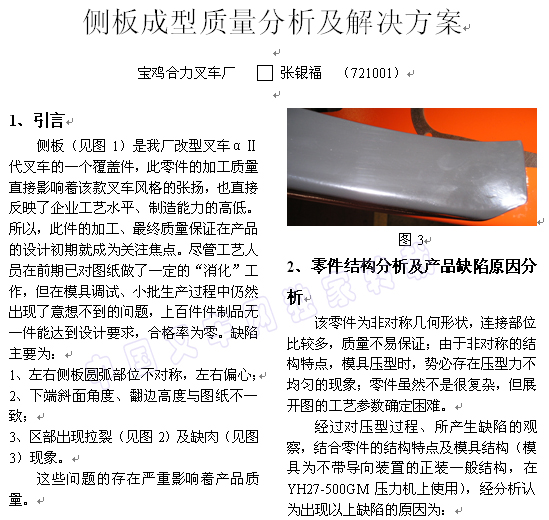 侧板成型质量分析及解决方案