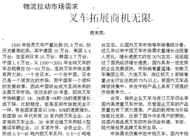 中叉网(www.chinaforklift.com)尊重合法版权,反对侵权盗版。(凡是我网所转载之文章,文中所有文字内容和图片视频之知识产权均系原作者和机构所有。文章内容观点,与本网无关。如有需要删除,敬请来电商榷!)