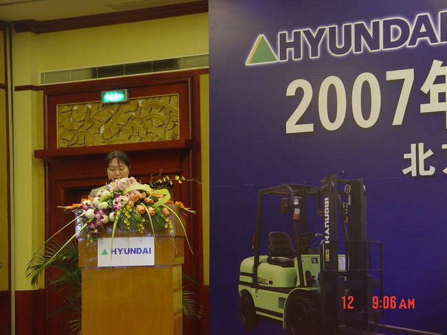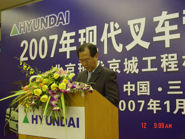韩国现代重装备专务金钟振说:“2006年在竞争同行加大投资,更加灵活的售政策下,叉车市场进入了白热化的竞争中,但我们现代在座各位代理商的努力和奋斗下,北京现代叉车销售取得了优秀的成绩占据了很高的市场占有率。”