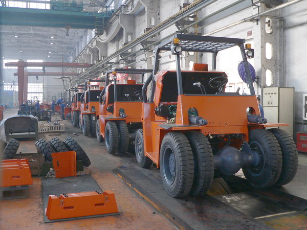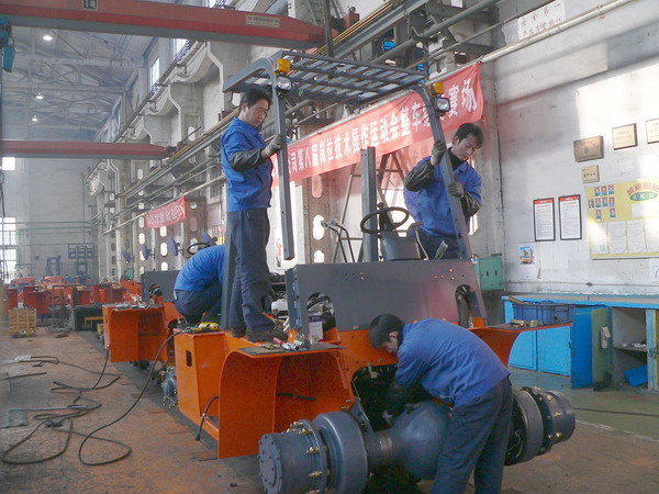 随后笔者又来到了大吨位车间生产现场,一派繁忙的生产场面呈现在眼前,装配线上一台台5—10吨的大吨位叉车经组装后正缓缓驶下生产线。据车间负责同志介绍,目前在线和预装人员15名,日产下线达10台左右,为了完成指标我们进行了认真分析,对内部人员进行了调整,使其形成部件组装,减轻各工位上一定的工作量。在作业场地上加快物流的畅通。另外通过延长工作时间来缓解产能不足,通过上下共同协作,相互配合,元月份商品车达195台,创历史新高。