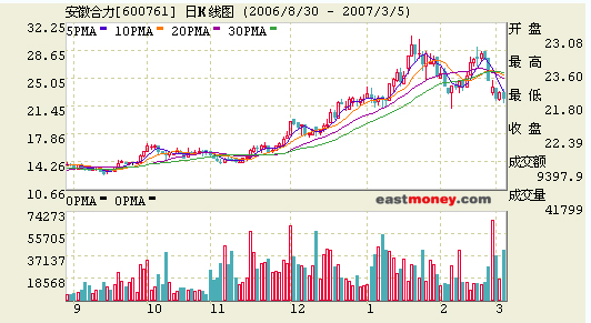 安徽合力将继续保持其在中国的叉车行业的领先地位,并可以与全球领先水平进行有力竞争。同时,预计固定资产投资增长速度的减缓对公司的叉车销量造成的影响较小,因为公司生产的叉车被广泛用于制造、建筑、国防、能源、采矿、零售、纺织、交通以及仓储等多个行业的运作。合力还将开发生产新的重型机械包括大吨位叉车、集装箱搬运车和大吨位装载机。这些重型机械新产品在今后一到两年内不会给公司的销售和盈利带来实质性的贡献。目前,由于缺乏规模经济优势,大吨位装载机可能出现小额亏损。