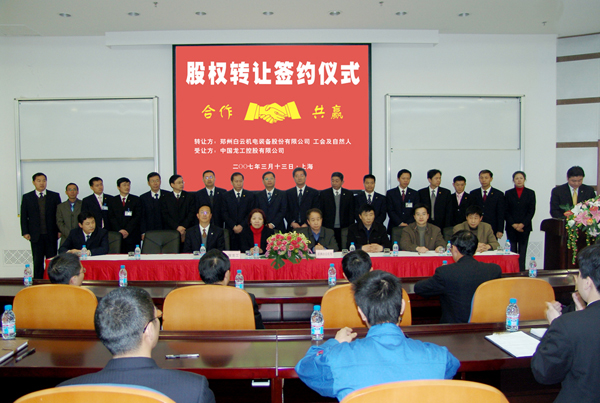 3月13日,中国龙工控股有限公司董事局副主席倪银英女士与郑州白云机电装备股份有限公司四位股东授权代表正式签订股权转让协议,中国龙工受让郑州白云机电装备股份有限公司现有股东所持有的郑州白云机电装备股份有限公司的全部股权。