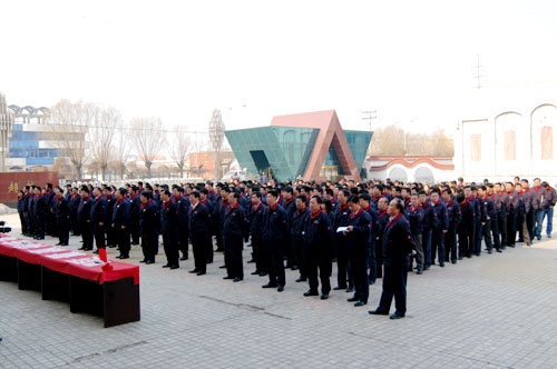 2007年朝柴公司确定为"质量效益年",为进一步激发广大员工决战"质量效益年"的工作热情和干劲,党委工作部组织召开了此次决战"质量效益年"誓师大会暨签名仪式。