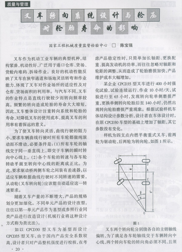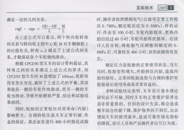叉车转向系统设计与轮压对轮胎寿命的影响