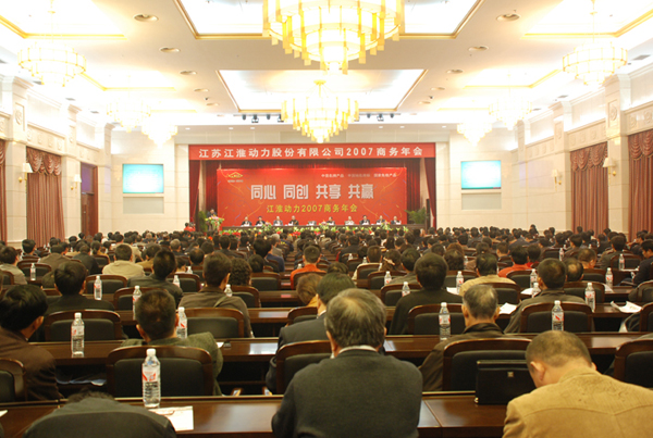 在本届商务年会上,股份公司总经理胡尔广首先代表公司全体员工,向与会客商长期以来给予江淮动力的悉心支持和鼎力帮助表示诚挚的敬意和衷心的感谢!他说,2007年,江动在国家一系列支农、惠农政策的指引下,通过狠抓内部管理,强化改革发展举措,全力推进“产品、市场”两大结构调整,有力促进了企业生存发展与市场竞争能力的持续提升,较好克服了原材料价格持续上涨和人民币升值的负面影响,取得了预期的经营业绩。07年,公司预计产销各类发动机及终端产品112万台,同比增长8.7%;实现销售收入18亿元,同比增长10.2%;出口创汇8000万美元,同比增长20%。与此同时,企业的产品质量、新品研发、售后服务等方面的工作也得到了持续改进与全面提升,企业整体竞争实力和经济运行质量显著提高。