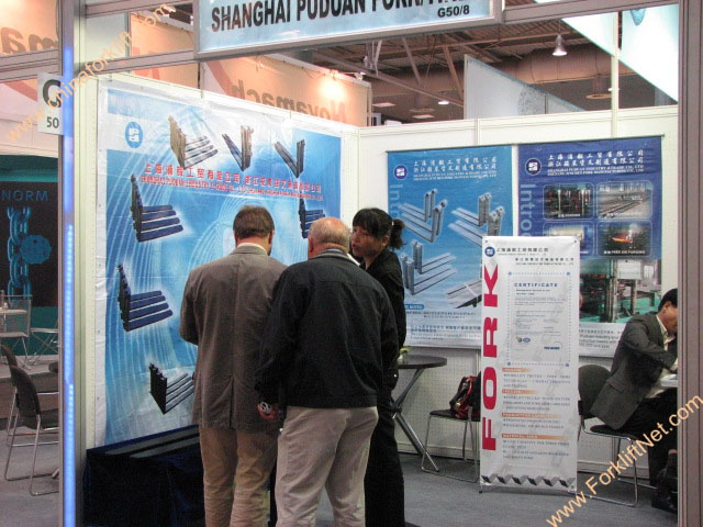 上海浦锻工贸专业生产1-14吨各种类型的货叉,产品服务于欧美和国内各大叉车整机制造商,出口比例70%。展会上展出的串杆式货叉以精致的外形,过硬的产品质量,完美的设计理念吸引了众多厂商驻足咨询洽谈。