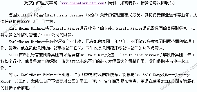 凯傲集团及全球领先的供应商,专业制造叉车、仓储设备及其他工业车辆,是欧洲市场上的佼佼者。目前集团拥有21,000名员工。2006年,集团旗下三个品牌——林德、STILL及OM的净销售量达到了43亿欧元。