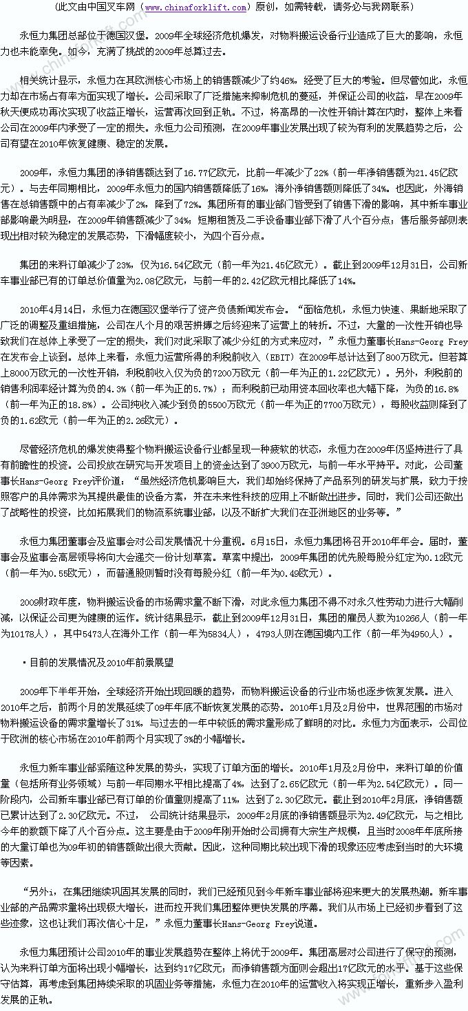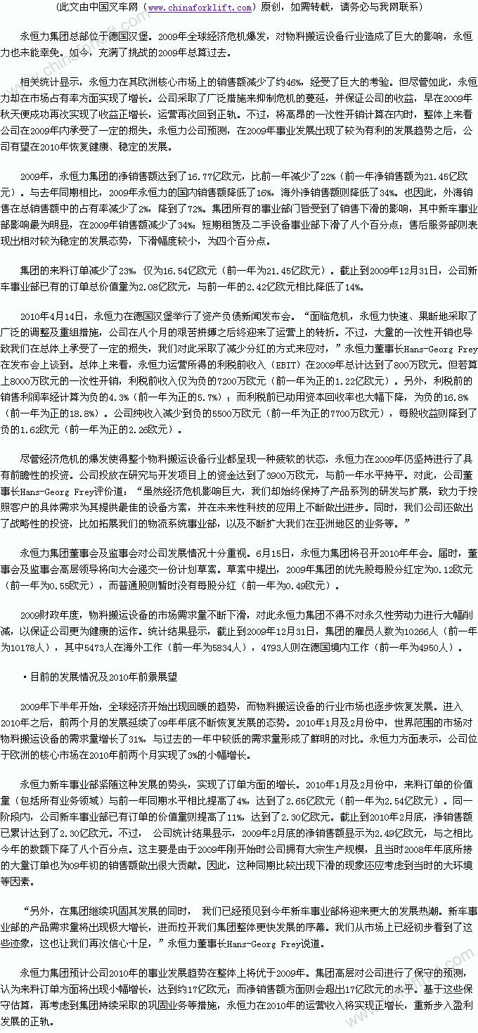 永恒力公司在物料搬运设备制造、仓储及物流工程领域处于世界领先地位,现已成为生产型物流服务提供商,可为客户提供全系列叉车、货架系统, 服务范围涵盖整个内部物流。永恒力公司成立于1953年,总部位于德国汉堡。公司股票现可在任何一家德国证交所交易。