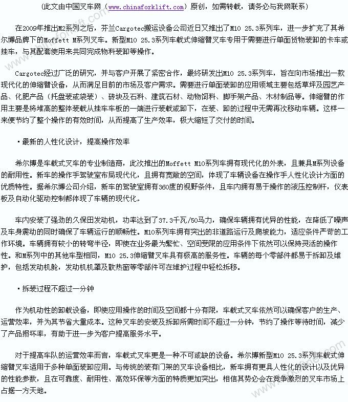 Cargotec是世界领先的货物装卸方案供应商,用于地方运输、码头、港口、分销中心及航运。Cargotec集团销售额达到34亿欧元,员工人数达到12000人。Cargotec公司B股在赫尔辛基证券交易所上市。