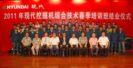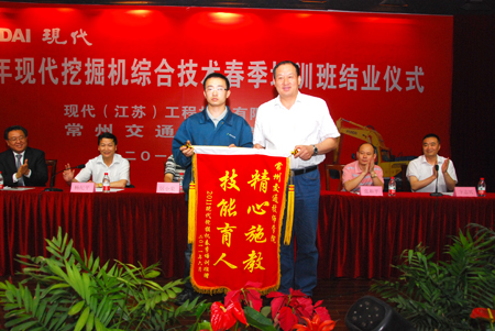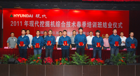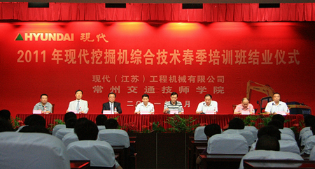 6月14日,2011年春季现代挖掘机综合技术培训班结业典礼在常州交通技师学院的报告大厅隆重举行。现代(江苏)工程机械有限公司赵益奎总裁、客户支援部朴喜廷总经理、客户支援部冷国庆部长与常州交通局领导、交通技师院领导以及全体学员参加了典礼。