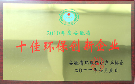 日前,我公司被安徽省环境保护产业协会认定为“2010年度安徽省十佳环保创新企业”。这是公司继2007年被授予“安徽省环境保护创新试点单位”、2010年被授予“安徽省环保产业优秀企业”后在环境保护方面获得的又一殊荣,标志着我公司在环境保护方面迈向了一个新的台阶。