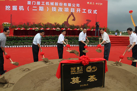 6月28日,厦工挖掘机二期技改项目举行开工仪式。据悉本次的项目规划始于去年——2010年下半年,公司的十二五发展目标完成了规划。根据公司总体规划,对挖掘机项目的建设目标进行了调整,提高了产品产量,并增加了旋挖钻产品。为了更加合理地调整生产组织、形成完整的生产能力,新征地400亩,同时重新调整了建设方案。本次技改项目发展的产品主要为4t-50t级系列履带液压挖掘机、旋挖钻机。在原厂区内扩建挖掘机装配车间、建设挖掘机整机涂装车间、挖掘机调试返修间、产品出厂试验场、产品停放场,并对生产辅助设施进行部分改造。新建厂房及车间的生产火灾危险性分类为“丁”或“戊”类,耐火等级均为二级,一般为轻钢厂房。在外部造型、装修方面,本着工艺平面功能的要求及企业文化的要求,厂房外立面外观色彩以浅灰色为主,造型简洁、大方、明快。除此以外,还将购置生产所需的工艺装备,包含下料、焊接、机械加工、结构件涂装、装配、起重运输等主要生产设备,并对部分原有生产设备进行改造。项目建成后,将形成年产挖掘机15000台,旋挖钻形成500台的产能,产品形成百亿经济规模。
