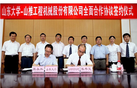 6月23日,山推与山东大学在该校中心校区签署“产学研”全面合作协议。双方将通过机械工程和材料研究与应用等方面加大技术开发,构建起以市场为导向、产学研相结合的技术创新合作体系。公司董事长张秀文,副总经理徐刚,山东大学副校长张永兵,机械工程学院长李剑锋等参加了仪式,公司人力资源部、战略投资部、企业文化部相关人员参加。