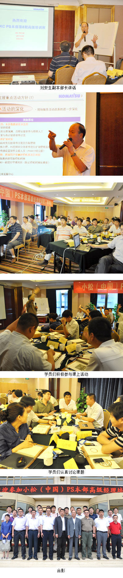 6月20日,小松(中国)PS刘安生副本部长、沈印超、王龙刚及华中办刘建敏等多位领导出席了会议。在三天的时间里,来自全国各地的35名小松各代理店的PS领导们齐聚西安,相互交流管理经验、共话行业发展、用心学习高效能人士的7个习惯。