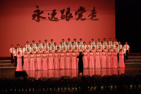 跟党走”大合唱比赛重点骨干企业专场在这里精彩上演。来自全县11个重点骨干企业在舞台上激烈角逐,共同颂唱党的光辉历程。