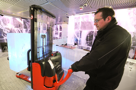 林德为冰吧提供的是一台L10电动托盘堆垛叉车,协助冰吧季节性的冰块更新和年度的维护和重建。在冰吧的修缮过程中,低温、狭窄的工况都对物料搬运的专业性提出了很高的要求, 而林德的电动托盘堆垛叉车L10轻松实现了搬动和提升大块的冰块的工作任务。