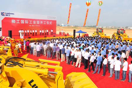 “我宣布:广西柳工机械股份有限公司国际工业园开工!”8月1日,在柳州市委副书记、市长郑俊康的宣布下,柳工大型装载机研发制造基地和柳工国际配件中心建设项目正式开工,项目建成后将实现年产1万台以大型装载机为主的各种工程机械、10万套工程机械驱动桥、齿轮。当日上午,柳工在柳州市河西工业园一区柳工国际工业园区隆重举行项目开工庆典,柳州市政府、工信委、发改委、国土局及柳南区委区政府等部门领导、柳工集团主要领导,以及各大媒体代表、柳工供经销商、应商代表、员工代表约300人共同参加了庆典。