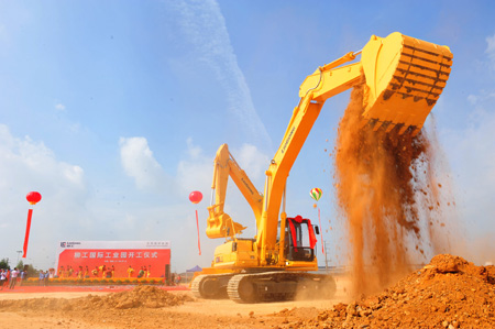 2011上半年,在各级政府领导的关心支持下,全体柳工人以敢于挑战、勇于承担、勇于超越的精神,不断谱写辉煌业绩,实现了公司快速健康发展,取得了销售各种工程机械37600台,实现销售收入106亿元,同比增长30%的良好业绩。随着柳工产品线不断丰富,核心竞争力不断提高,品牌知名度持续提升,按照该公司“十二五”战略纲要,到2015年,柳工将实现销售收入500亿人民币。柳工国际工业园项目的开工建设,是柳工在国际化发展道路上的一个重要战略布局。