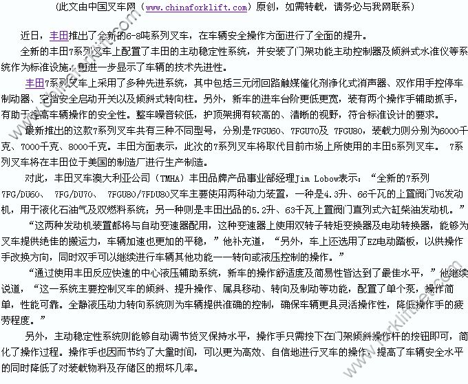 关于丰田叉车美国公司