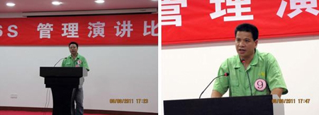 “6S”管理的“整理、整顿、清扫、清洁、素养、安全”是企业科学的先进的管理方法。8月8 日,公司举行了“6S”管理演讲比赛,参赛人员为公司各车间主任。激情洋溢的演讲,体现了中层领导以身作则、下定决心要搞好“6S”管理。