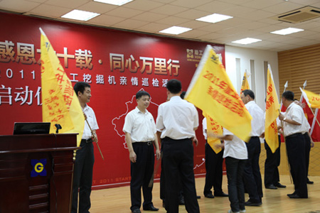 启动仪式最后,蔡奎全总裁发表了重要讲话。蔡总裁首先肯定了本次活动举办的意义,他分析了厦工挖掘机的发展历程及目前面临的各方挑战,提出要求全体人员应该把这次客户走访活动的意义落到实处,确实为客户解决疑难杂症及遗留问题,让客户真正感受厦工的巨大变化,提高客户对厦工的信心,振奋了在场人员的激情。讲话结束后,蔡总裁郑重宣布:2011年厦工挖掘机“感恩六十载、同心万里行”亲情巡检活动正式启动。