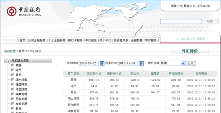 表一(中国银行2010年12月31日美元对人民币外汇比率)