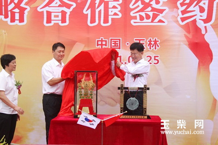 在热烈的掌声中,玉柴重工总经理张士勇分别与韩国斗山株式会社(MOTTROL)社长尹泰圣、韩国斗山株式会社(MOTTROL)常务、斗山液压机械(江阴)有限公司董事长崔东辉在战略合作协议上郑重签字。