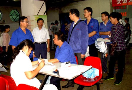 9月8日上午,安徽叉车集团有限责任公司工会按照合肥市献血办公室的要求,组织公司本部、在肥分子公司200余名职工义务献血。集团公司党委副书记、纪委书记、工会主席李继香,副主席范群英与在肥分子公司工会负责人、直属分工会主席等亲临现场,看望参加献血的职工。