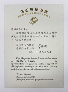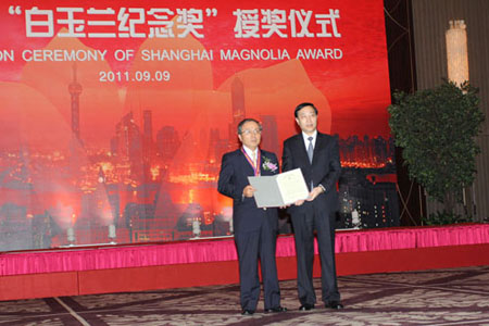 9月9日,2011年度上海市白玉兰纪念奖授奖仪式在西郊宾馆隆重举行。株式会社小松制作所(即小松集团)中国总代表兼小松(中国)投资有限公司董事长茅田泰三等来自19个国家的46位外籍人士获此殊荣。“白玉兰奖”是上海市授予外籍在沪友好人士的最高奖项,旨在表彰对上海市经济建设、社会发展和对外交流等做出杰出贡献的外籍人士。